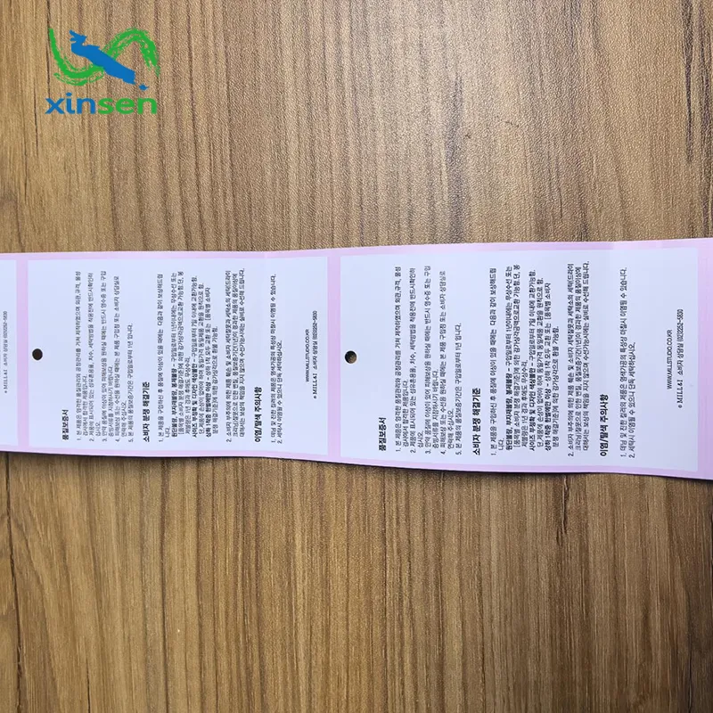 2. Mang thông tin toàn diện: Hỗ trợ in nhiều trang, có thể trình bày rõ ràng LOGO thương hiệu, tên sản phẩm, kích thước, thành phần, hướng dẫn giặt, tiêu chuẩn thực hiện, mã chống hàng giả và các thông tin đầy đủ khác, đáp ứng yêu cầu ghi nhãn tuân thủ của sản phẩm may mặc.